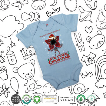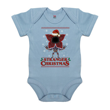 Stranger Things Christmas, Βρεφικό φορμάκι μωρού, 0-18 μηνών, Μπλε, 100% Organic Cotton, κοντομάνικο