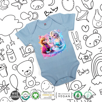 Έλσα & Άννα, Βρεφικό φορμάκι μωρού, 0-18 μηνών, Μπλε, 100% Organic Cotton, κοντομάνικο