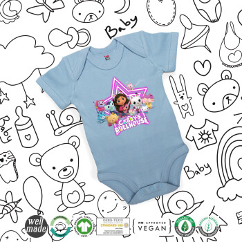 Gabby Dollhouse (ΤΟ ΚΟΥΚΛΟΣΠΙΤΟ ΤΗΣ ΓΚΑΜΠΙ), Βρεφικό φορμάκι μωρού, 0-18 μηνών, Μπλε, 100% Organic Cotton, κοντομάνικο
