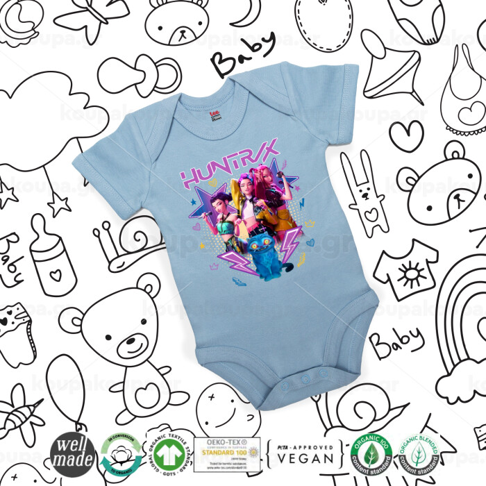 Huntrix K-pop series, Βρεφικό φορμάκι μωρού, 0-18 μηνών, Μπλε, 100% Organic Cotton, κοντομάνικο