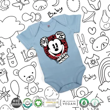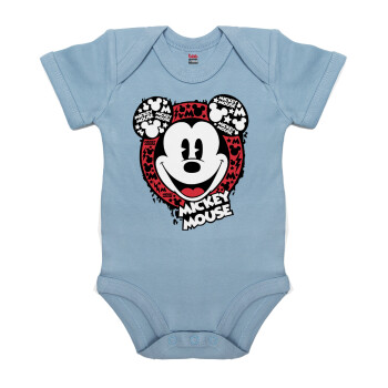 Mickey Mouse, Βρεφικό φορμάκι μωρού, 0-18 μηνών, Μπλε, 100% Organic Cotton, κοντομάνικο