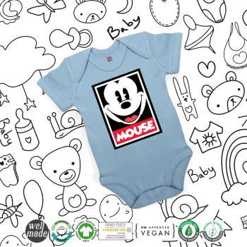 Μίκυ Μάους, Βρεφικό φορμάκι μωρού, 0-18 μηνών, Μπλε, 100% Organic Cotton, κοντομάνικο