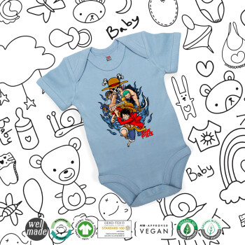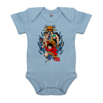 One Piece, Βρεφικό φορμάκι μωρού, 0-18 μηνών, Μπλε, 100% Organic Cotton, κοντομάνικο