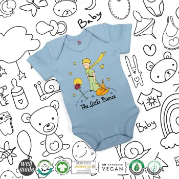 Ο μικρός πρίγκιπας classic, Βρεφικό φορμάκι μωρού, 0-18 μηνών, Μπλε, 100% Organic Cotton, κοντομάνικο