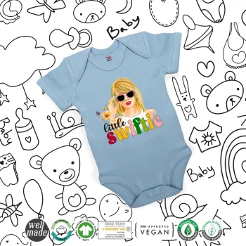 Little Swiftie, Βρεφικό φορμάκι μωρού, 0-18 μηνών, Μπλε, 100% Organic Cotton, κοντομάνικο