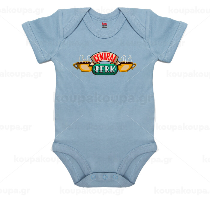Central perk, Βρεφικό φορμάκι μωρού, 0-18 μηνών, Μπλε, 100% Organic Cotton, κοντομάνικο