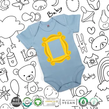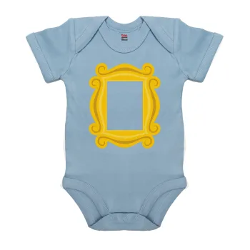 Friends frame, Βρεφικό φορμάκι μωρού, 0-18 μηνών, Μπλε, 100% Organic Cotton, κοντομάνικο