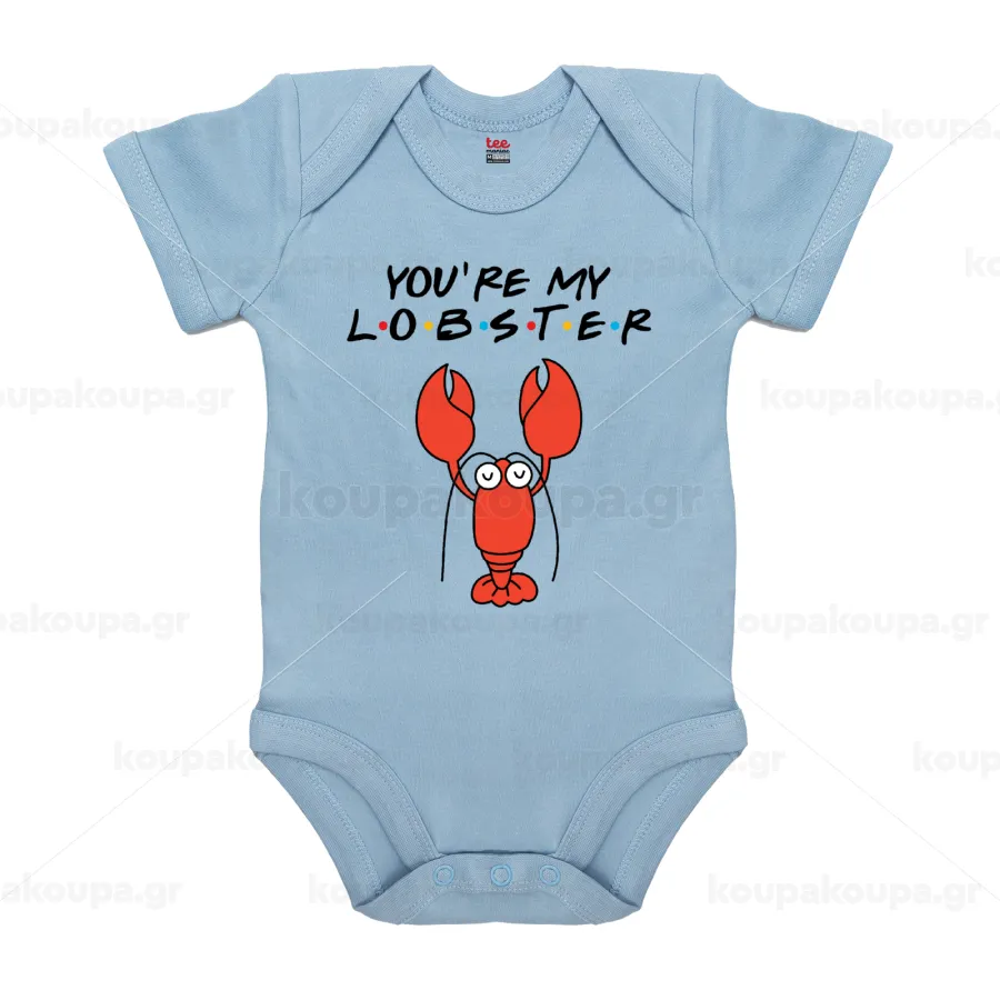 Friends you're my lobster, Βρεφικό φορμάκι μωρού, 0-18 μηνών, Μπλε, 100% Organic Cotton, κοντομάνικο