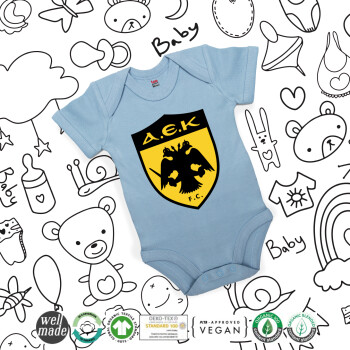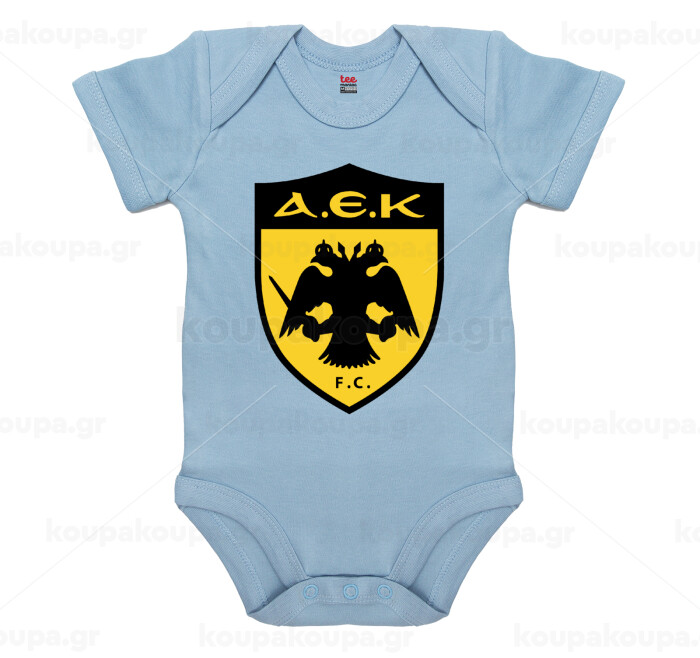 ΑΕΚ, Βρεφικό φορμάκι μωρού, 0-18 μηνών, Μπλε, 100% Organic Cotton, κοντομάνικο