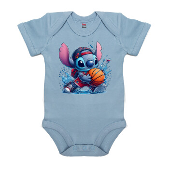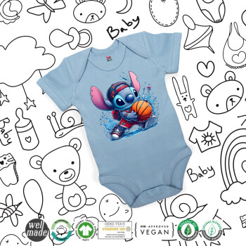 Stitch Basketball, Βρεφικό φορμάκι μωρού, 0-18 μηνών, Μπλε, 100% Organic Cotton, κοντομάνικο