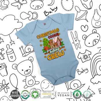 Christmas Cookie Baking Crew, Βρεφικό φορμάκι μωρού, 0-18 μηνών, Μπλε, 100% Organic Cotton, κοντομάνικο