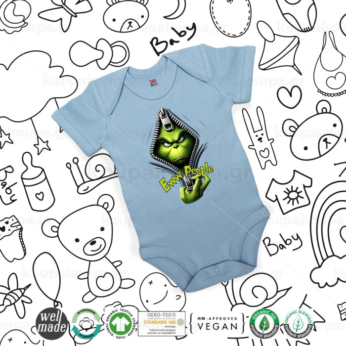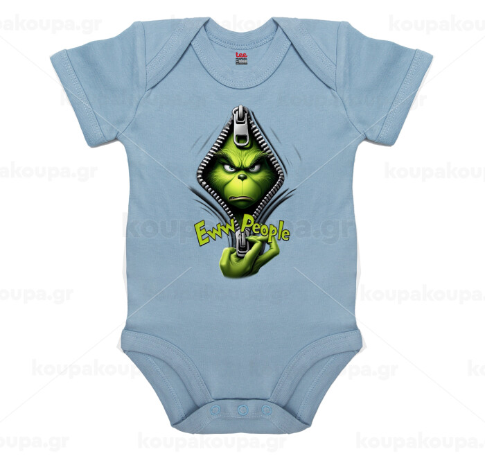 Grinch, eww people, Βρεφικό φορμάκι μωρού, 0-18 μηνών, Μπλε, 100% Organic Cotton, κοντομάνικο