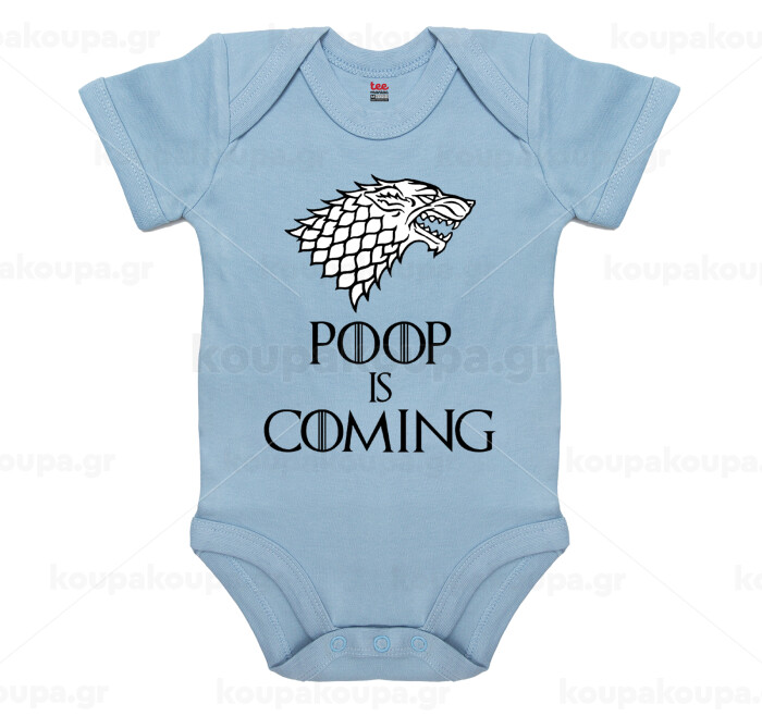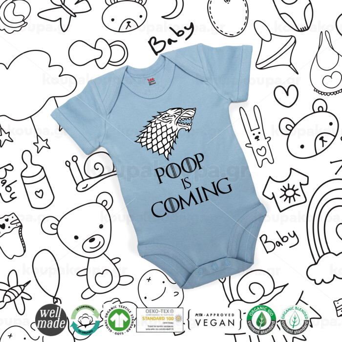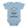 POOP Is Coming, Βρεφικό φορμάκι μωρού, 0-18 μηνών, Μπλε, 100% Organic Cotton, κοντομάνικο
