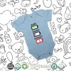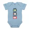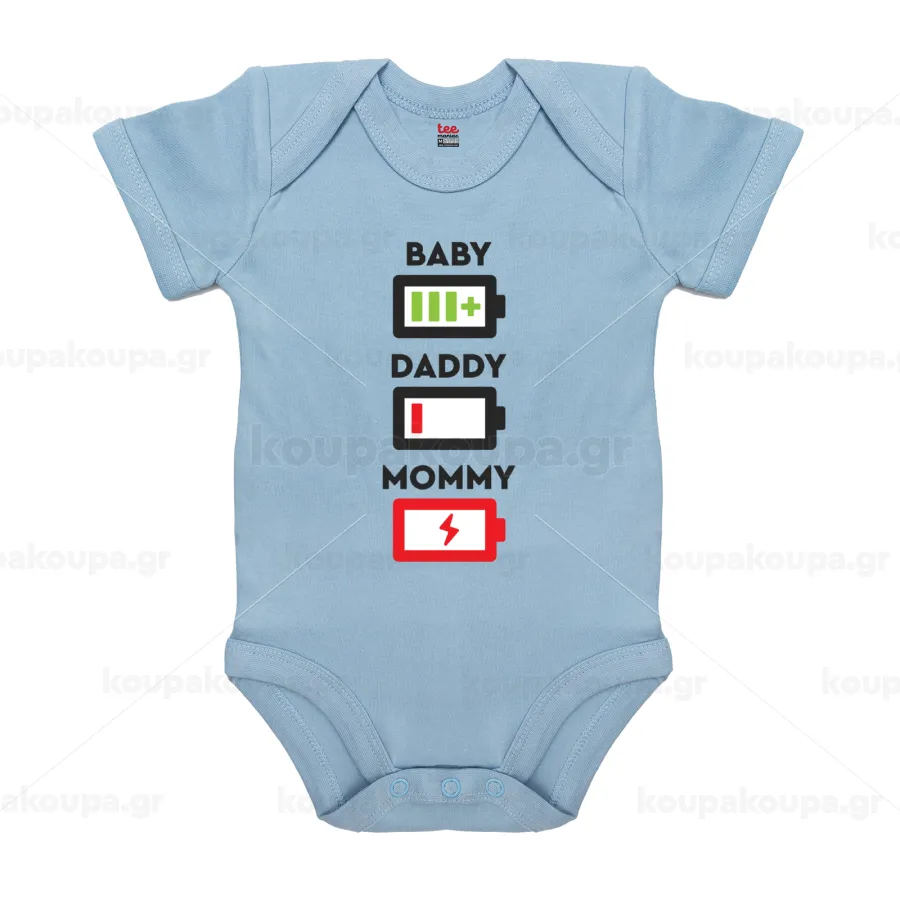 BABY, MOMMY, DADDY Low battery, Βρεφικό φορμάκι μωρού, 0-18 μηνών, Μπλε, 100% Organic Cotton, κοντομάνικο