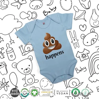 Shit Happens, Βρεφικό φορμάκι μωρού, 0-18 μηνών, Μπλε, 100% Organic Cotton, κοντομάνικο