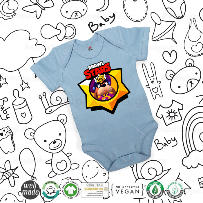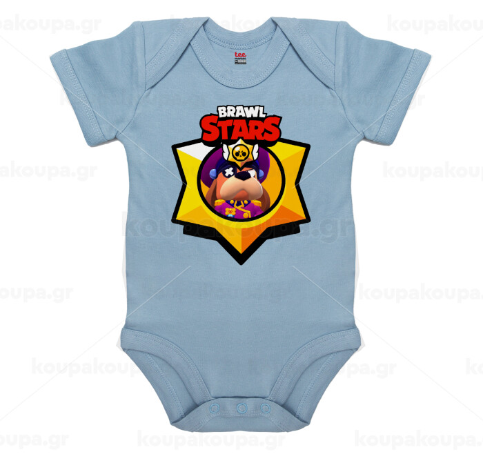 Brawl Stars Ruffs, Βρεφικό φορμάκι μωρού, 0-18 μηνών, Μπλε, 100% Organic Cotton, κοντομάνικο