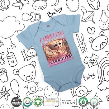 BALLERINA CAPUCHINA FUNK, Βρεφικό φορμάκι μωρού, 0-18 μηνών, Μπλε, 100% Organic Cotton, κοντομάνικο