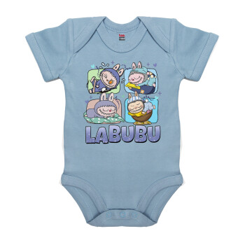 Labubu, Βρεφικό φορμάκι μωρού, 0-18 μηνών, Μπλε, 100% Organic Cotton, κοντομάνικο