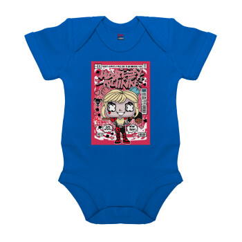 Harley Quinn (Χάρλεϊ Κουίν), Βρεφικό φορμάκι μωρού, Μπλε Κοβαλτίου, 100% Organic Cotton, κοντομάνικο