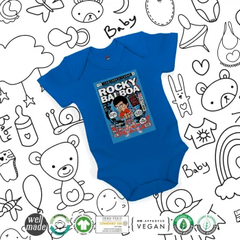 Rocky Balboa, Βρεφικό φορμάκι μωρού, Μπλε Κοβαλτίου, 100% Organic Cotton, κοντομάνικο
