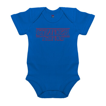 Stranger Things Logo, Βρεφικό φορμάκι μωρού, Μπλε Κοβαλτίου, 100% Organic Cotton, κοντομάνικο