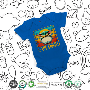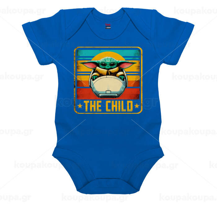 The Child, Βρεφικό φορμάκι μωρού, Μπλε Κοβαλτίου, 100% Organic Cotton, κοντομάνικο