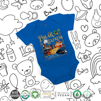 The Polar Express, Βρεφικό φορμάκι μωρού, Μπλε Κοβαλτίου, 100% Organic Cotton, κοντομάνικο