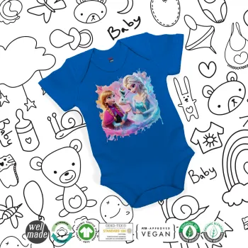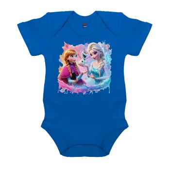 Έλσα & Άννα, Βρεφικό φορμάκι μωρού, Μπλε Κοβαλτίου, 100% Organic Cotton, κοντομάνικο