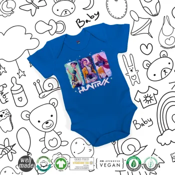 HUNTR/X K-pop girl group, Βρεφικό φορμάκι μωρού, Μπλε Κοβαλτίου, 100% Organic Cotton, κοντομάνικο