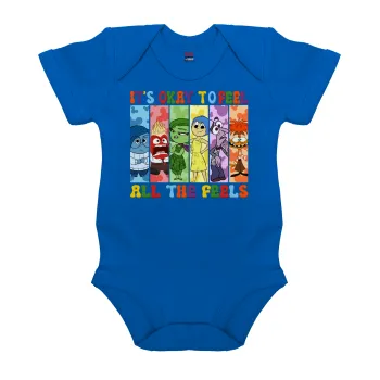 Inside Out It's Okay To Feel All The Feels , Βρεφικό φορμάκι μωρού, Μπλε Κοβαλτίου, 100% Organic Cotton, κοντομάνικο
