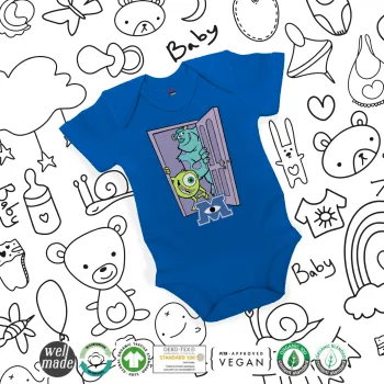 Monster inc, Βρεφικό φορμάκι μωρού, Μπλε Κοβαλτίου, 100% Organic Cotton, κοντομάνικο