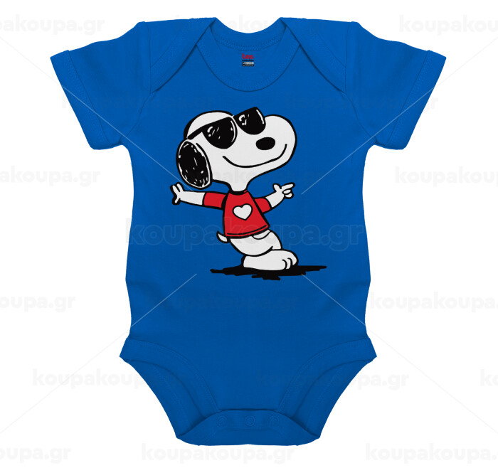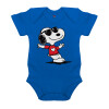 Snoopy καρδούλα, Βρεφικό φορμάκι μωρού, Μπλε Κοβαλτίου, 100% Organic Cotton, κοντομάνικο