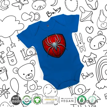 Spider-man, Βρεφικό φορμάκι μωρού, Μπλε Κοβαλτίου, 100% Organic Cotton, κοντομάνικο