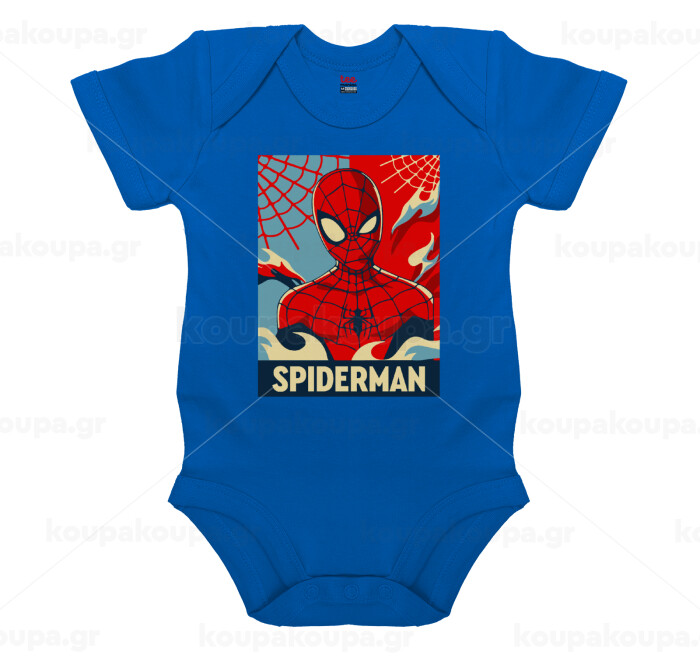 Spiderman kid, Βρεφικό φορμάκι μωρού, Μπλε Κοβαλτίου, 100% Organic Cotton, κοντομάνικο