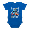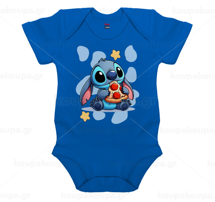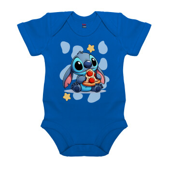 Stitch Pizza, Βρεφικό φορμάκι μωρού, Μπλε Κοβαλτίου, 100% Organic Cotton, κοντομάνικο