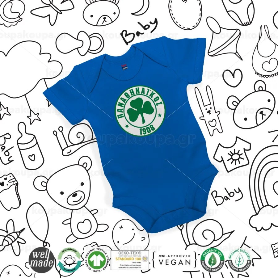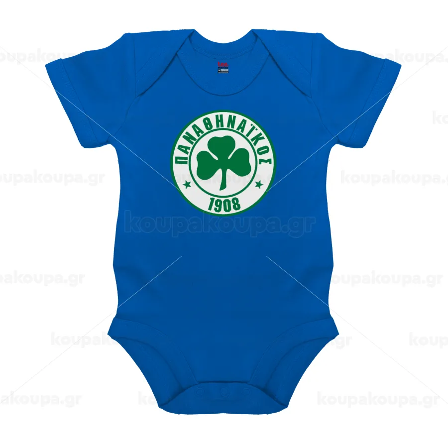 ΠΑΟ Παναθηναϊκός, Βρεφικό φορμάκι μωρού, Μπλε Κοβαλτίου, 100% Organic Cotton, κοντομάνικο