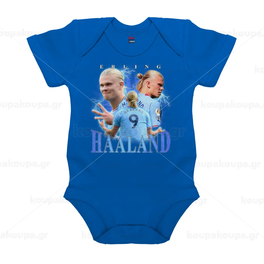 Erling Haaland, Βρεφικό φορμάκι μωρού, Μπλε Κοβαλτίου, 100% Organic Cotton, κοντομάνικο