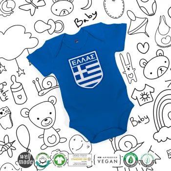 Ελλάς, Βρεφικό φορμάκι μωρού, Μπλε Κοβαλτίου, 100% Organic Cotton, κοντομάνικο