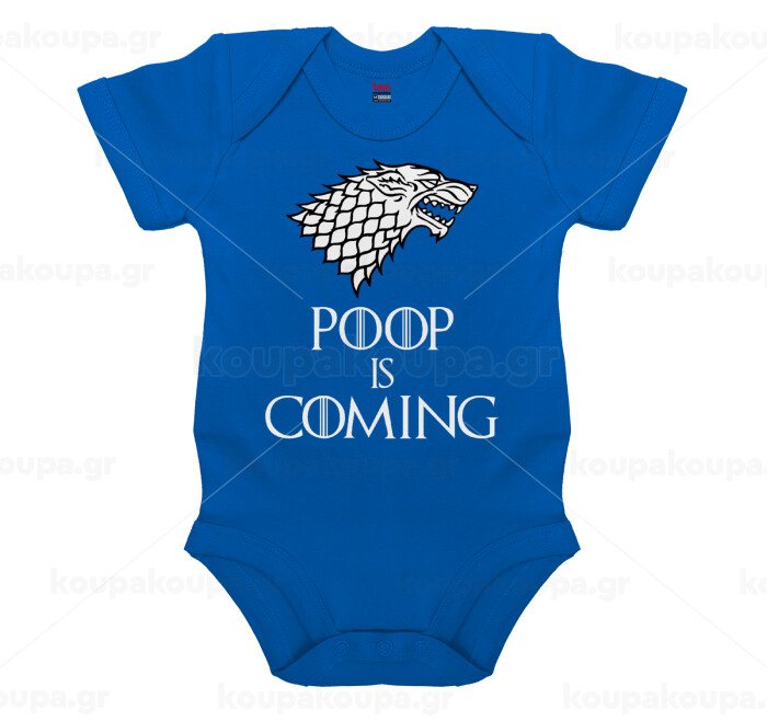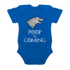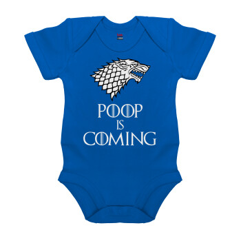 POOP Is Coming, Βρεφικό φορμάκι μωρού, Μπλε Κοβαλτίου, 100% Organic Cotton, κοντομάνικο