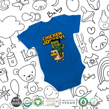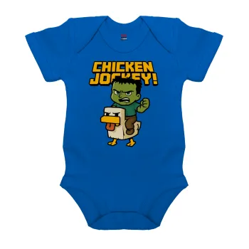Chicken Jockey, Βρεφικό φορμάκι μωρού, Μπλε Κοβαλτίου, 100% Organic Cotton, κοντομάνικο