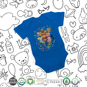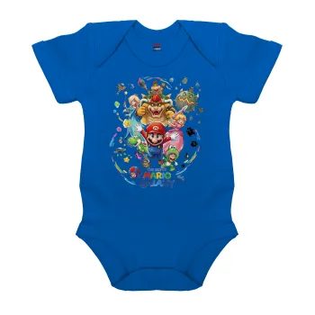 Mario Galaxy, Βρεφικό φορμάκι μωρού, Μπλε Κοβαλτίου, 100% Organic Cotton, κοντομάνικο