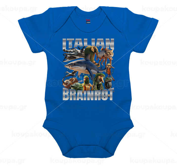 Italian Brainrot, Βρεφικό φορμάκι μωρού, Μπλε Κοβαλτίου, 100% Organic Cotton, κοντομάνικο