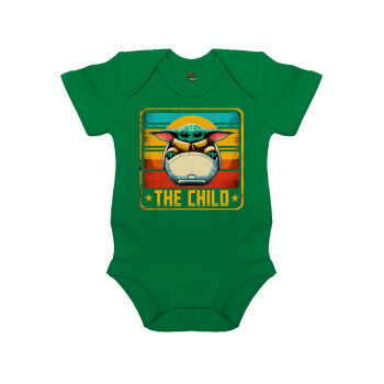 Baby Yoda mandalorian, Βρεφικό φορμάκι μωρού, ΠΡΑΣΙΝΟ, 100% Organic Cotton, κοντομάνικο