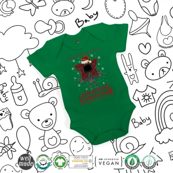 Stranger Things Christmas, Βρεφικό φορμάκι μωρού, ΠΡΑΣΙΝΟ, 100% Organic Cotton, κοντομάνικο