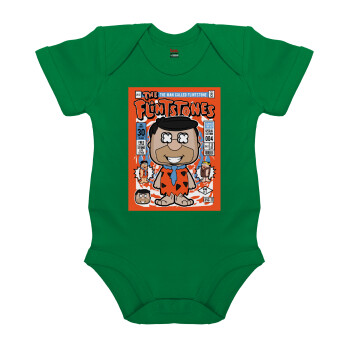 The flintstones, Βρεφικό φορμάκι μωρού, ΠΡΑΣΙΝΟ, 100% Organic Cotton, κοντομάνικο