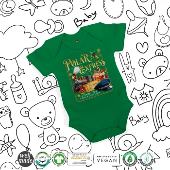 The Polar Express, Βρεφικό φορμάκι μωρού, ΠΡΑΣΙΝΟ, 100% Organic Cotton, κοντομάνικο