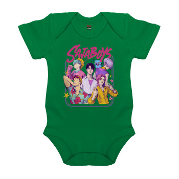Huntrix Saja Boys, Βρεφικό φορμάκι μωρού, ΠΡΑΣΙΝΟ, 100% Organic Cotton, κοντομάνικο