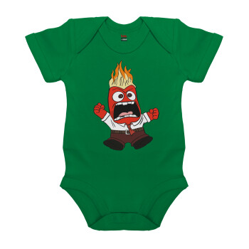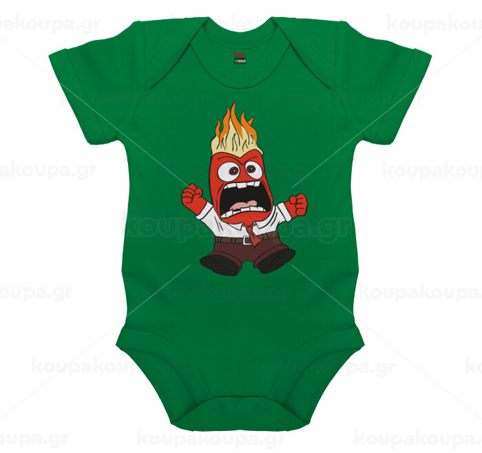 Inside Out θυμός, Βρεφικό φορμάκι μωρού, ΠΡΑΣΙΝΟ, 100% Organic Cotton, κοντομάνικο