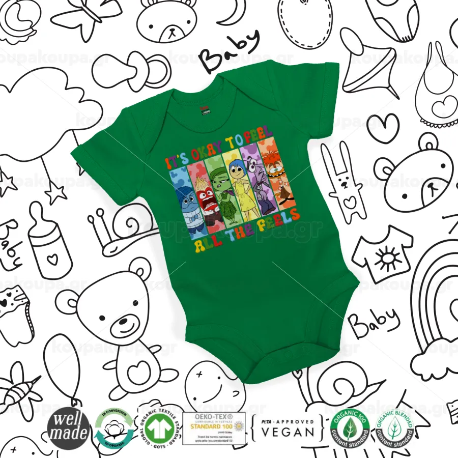Inside Out It's Okay To Feel All The Feels , Βρεφικό φορμάκι μωρού, ΠΡΑΣΙΝΟ, 100% Organic Cotton, κοντομάνικο