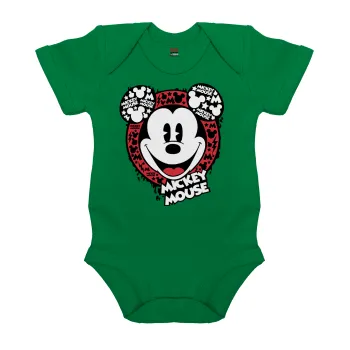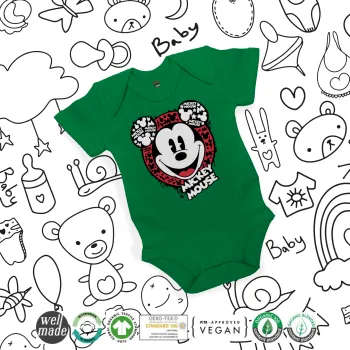 Mickey Mouse, Βρεφικό φορμάκι μωρού, ΠΡΑΣΙΝΟ, 100% Organic Cotton, κοντομάνικο